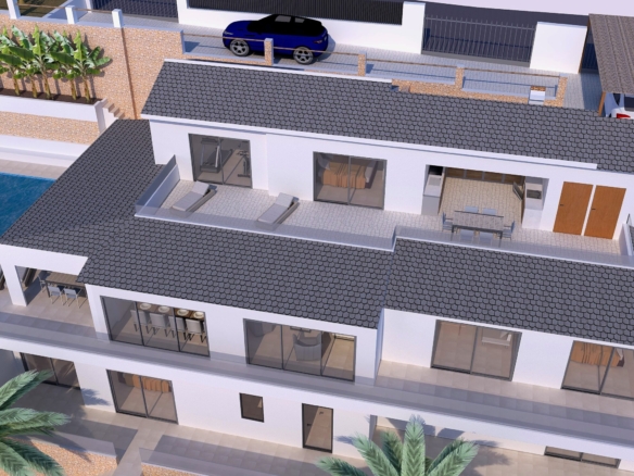 Entdecken Sie dieses beeindruckende Renovierungsprojekt in der prestigeträchtigen Urbanisation La Corona, nur einen Katzensprung vom Hafen und Strand von Jávea entfernt. In dieser Lage werden fast nie Immobilien angeboten. Die Aussicht ist spektakulär und die Sonne hat auf den verschiedenen überdachten und nicht überdachten Terrassen den ganzen Tag über freies Spiel. Die derzeitige klassische spanische Villa befindet sich auf einem Grundstück von 800 m2 und ist über drei Etagen verteilt. Die Villa wird komplett umgebaut und nach den heutigen Anforderungen und Standards renoviert, ohne ihren authentischen Charakter zu verlieren. Der Wohnbereich befindet sich auf der Ebene des Pools und umfasst ein sehr geräumiges Wohn-Esszimmer mit einer modernen, offenen Küche mit einer großen Kochinsel. Durch große Schiebefenster gelangt man vom Wohnzimmer aus auf eine große überdachte Terrasse am Pool. Auf dieser Etage befindet sich auch das Hauptschlafzimmer mit eigenem Bad und ein Gäste-WC. Eine Etage tiefer befinden sich drei weitere Schlafzimmer und zwei Bäder. Die oberste Etage umfasst ein Schlafzimmer mit eigenem Bad, eine Außenküche und ein Außenbad. Auf Straßenniveau befindet sich ein Carport. Mit insgesamt 200 m2 Terrasse verfügt jede Etage über eine geräumige Terrasse, auf der Sie dank der Südausrichtung den ganzen Tag die Sonne genießen können. Im Rahmen der Renovierung können die (potentiellen) Käufer noch verschiedene Entscheidungen treffen, je nach ihrem eigenen Geschmack, ihren Vorlieben und Vorstellungen.