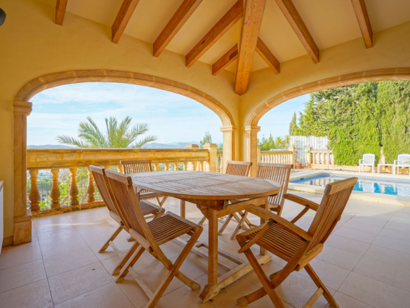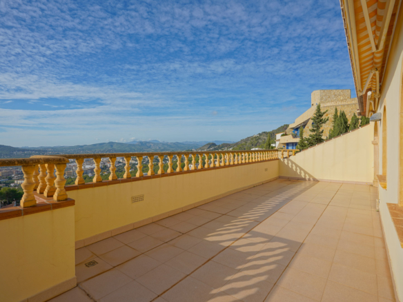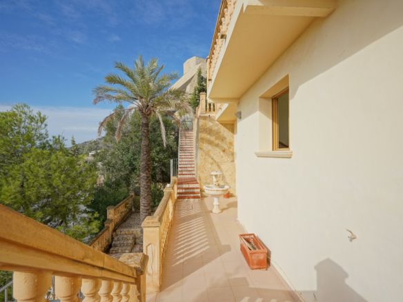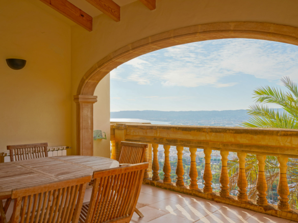 Diese traditionelle Villa befindet sich in der prestigeträchtigen Urbanisation La Corona in Javea und bietet einen atemberaubenden Blick über die azurblaue Bucht von Javea bis hin zum majestätischen Cap Negre. Genießen Sie nicht nur einen atemberaubenden Blick auf das Meer, sondern auch ein beeindruckendes Panorama auf die umliegende Berglandschaft. Dieser einzigartige 180°-Blick garantiert Ihnen jeden Morgen die schönsten Sonnenaufgänge auf der Ostseite und bezaubernde Sonnenuntergänge in den Bergen auf der Westseite. Die Villa ist elegant über drei Etagen verteilt, wobei der Pool perfekt auf dem Boden der Wohnräume liegt. In der Nähe der Straße finden Sie einen Carport und zusätzliche Parkplätze für zwei Fahrzeuge. Ein paar Stufen hinunter gelangen Sie durch den Haupteingang in die oberste Etage. Diese Etage führt zu einem großen Raum mit direktem Zugang zu einer großzügigen Terrasse mit einer überdachten Außenküche. Auf der mittleren Etage finden Sie das geräumige Wohn-Esszimmer mit einer gemütlichen Sitzecke und einem Kamin, eine moderne Küche mit Kochinsel, ein komfortables Schlafzimmer mit Doppelbett, ein stilvolles Badezimmer und ein Gäste-WC. Von jedem Zimmer – außer den Badezimmern – können Sie den wunderschönen Meerblick genießen. Das Wohnzimmer bietet Zugang zu einer großen überdachten Terrasse mit Blick auf den Pool und die schöne Landschaft. Im Erdgeschoss befinden sich das Hauptschlafzimmer mit eigenem Bad sowie zwei weitere Doppelschlafzimmer, die sich ein Bad teilen. Auch hier gibt es eine schöne Terrasse, auf der Sie sich entspannen und die Umgebung genießen können. Diese Villa kann bei Bedarf auch mit einem Renovierungsprojekt erworben werden. Sowohl der Hafen als auch das historische Zentrum von Javea sind in nur 5 Minuten zu erreichen, so dass Sie die ideale Kombination aus Ruhe und Zugang zu Kultur und Annehmlichkeiten haben. Kommen Sie und entdecken Sie Ihr Traumhaus in diesem Paradies an der Costa Blanca!