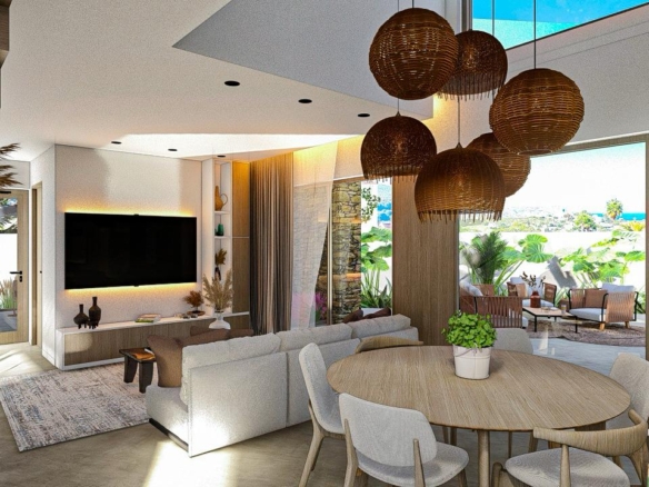 Die Villa erstreckt sich über zwei Etagen. Im Erdgeschoss befindet sich ein geräumiges, doppelhohes Wohnzimmer mit großen Fenstern, die den Raum mit natürlichem Licht durchfluten und sich direkt zum Pool hin öffnen. Außerdem gibt es ein Esszimmer, eine separate Küche, die mit den besten Geräten und Möbeln ausgestattet ist, ein Schlafzimmer und ein komplettes Badezimmer. Die Küche ist direkt mit einem voll ausgestatteten Außengrill mit Meerblick verbunden.Im Obergeschoss befinden sich zwei Schlafzimmer mit eigenem Bad, jedes mit eigener Terrasse. Die Villa verfügt über einen Carport für zwei Autos und ist so konzipiert, dass sie maximalen Komfort im Alltag bietet: moderne Bäder mit hochwertigen Oberflächen, funktionale Räume und gemütliche Atmosphären, perfekt für die gemeinsame Nutzung mit Familie oder Freunden.