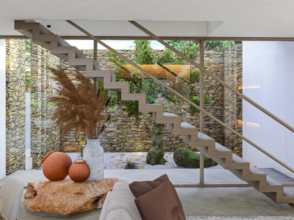 Die aus natürlichen Materialien wie Stein und Holz errichtete Villa zeichnet sich durch ihre strategische Lage aus, die Privatsphäre und wunderschöne Ausblicke aus fast jedem Winkel garantiert. Der tropische Garten und der private Pool bilden eine Oase der Entspannung, die durch mehrere Sitzbereiche und Terrassen im authentischen mediterranen Stil ergänzt wird.
