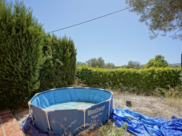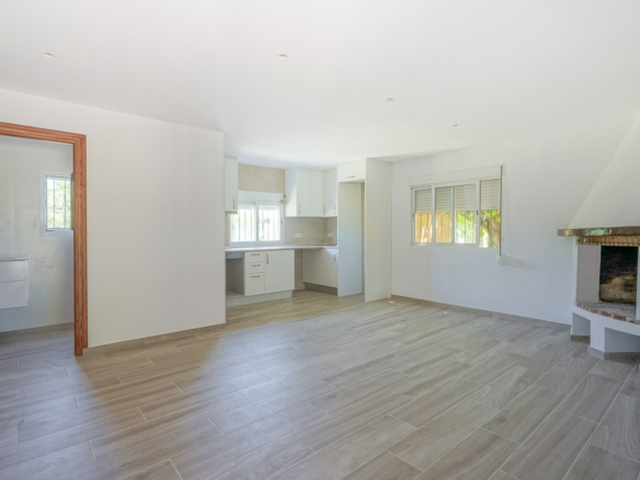 Die Villa verfügt über ein geräumiges Wohn- und Esszimmer mit offener Küche und Kamin, vier Schlafzimmer, ein modernes Badezimmer, einen Salon und einen praktischen Abstellraum. Im Außenbereich finden Sie Parkplätze für mehrere Autos, einen Garten mit einem Brunnen und verschiedene Obstbäume.
