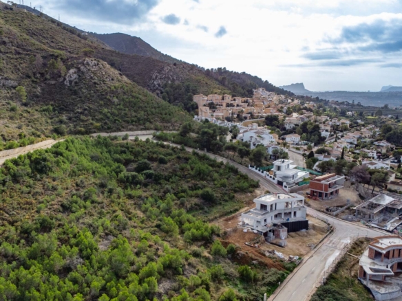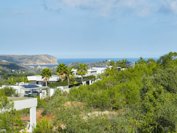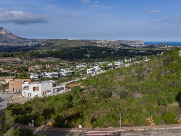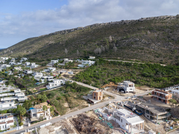Dieses wunderschöne Baugrundstück befindet sich in der exklusiven Villengegend Monte Olímpico und bietet einen außergewöhnlichen Panoramablick. Im Osten blicken Sie auf das Meer und Cabo de San Antonio, im Norden auf den Montgó und im Westen auf das malerische historische Zentrum von Benitachell, mit der Sierra de Bernia als beeindruckender Kulisse im Hintergrund.