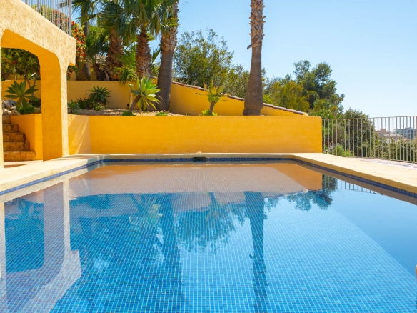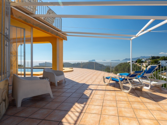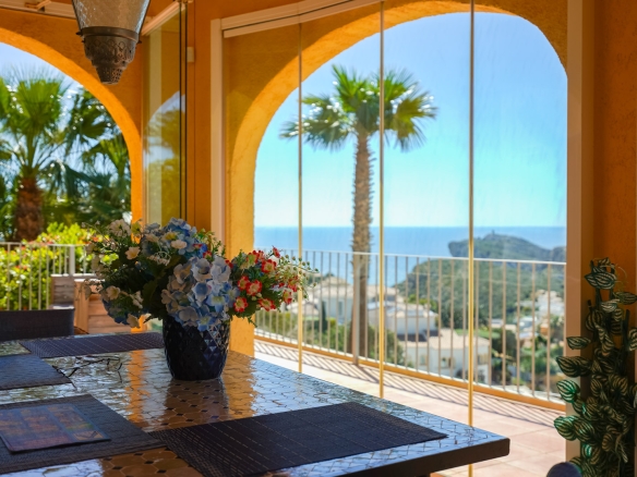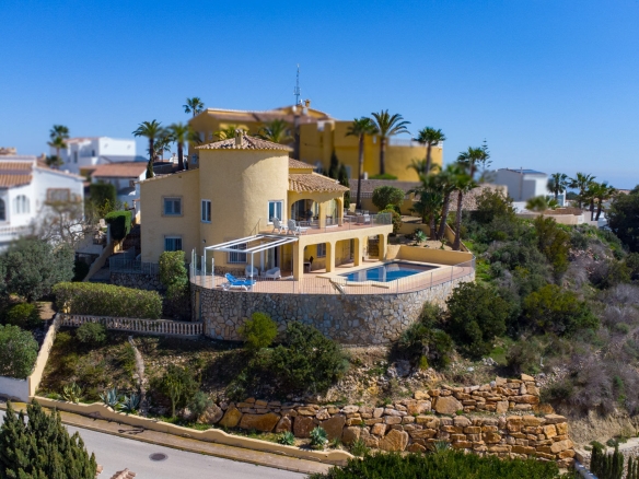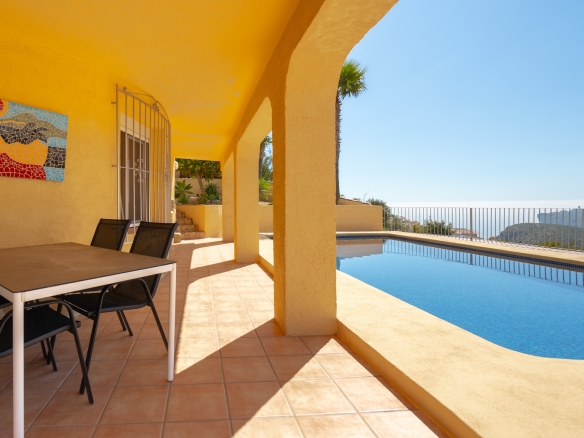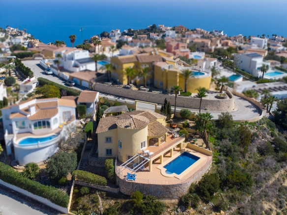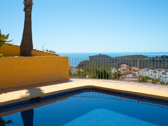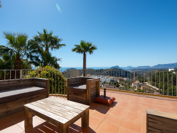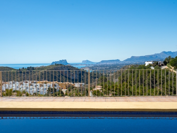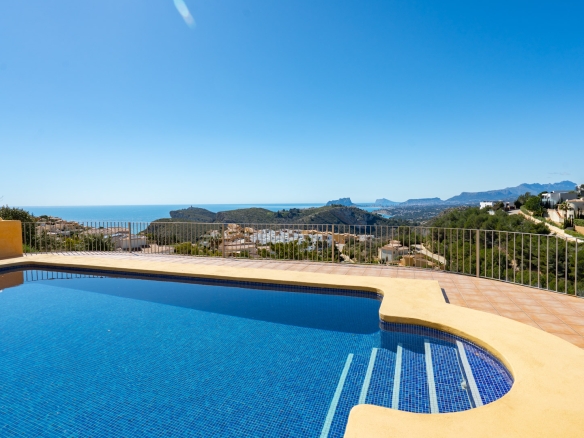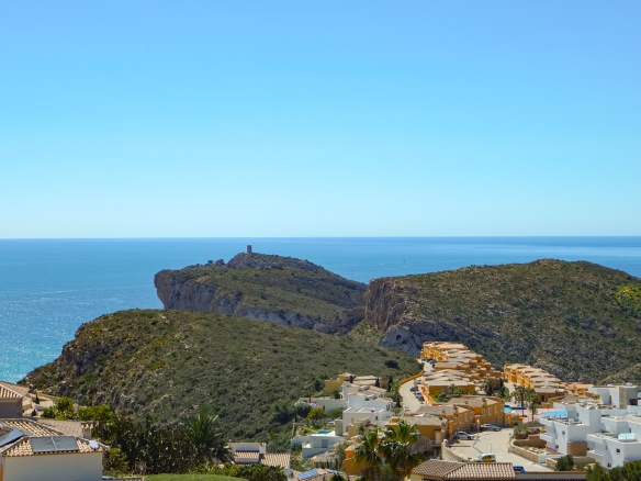 Diese schöne Villa befindet sich in einer Sackgasse in der ruhigen Urbanisation Cumbre del Sol. Die Immobilie bietet einen Panoramablick auf das Meer, den Cap d’Or in Moraira, die Küste von Benissa bis Calpe, die Sierra Helada in Benidorm sowie die beeindruckende Bergkette der Sierra de Bernia im Hinterland.