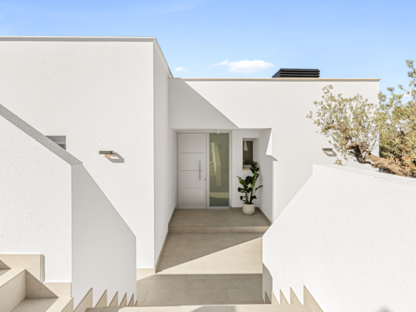 Diese elegante Villa befindet sich in der prestigeträchtigen Wohngegend Cumbre del Sol und verbindet moderne Architektur mit einer starken Verbindung zur mediterranen Umgebung und einheimischer Vegetation. Sie bietet einen freien Ausblick sowie eine begehrte Südwest-Ausrichtung und wurde darauf ausgelegt, Licht, Raum und die Verbindung zwischen Innen- und Außenbereichen zu optimieren.