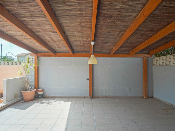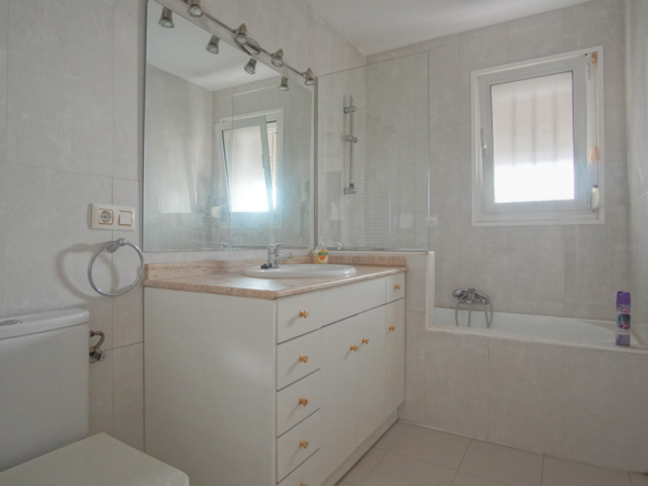 Das Haus bietet eine warme und funktionale Atmosphäre. Das Wohnzimmer wird von einem Kamin dominiert, der für eine gemütliche Note sorgt, und die halboffene Küche sorgt für Geräumigkeit und verbindet die Räume. Es verfügt über drei Schlafzimmer mit Einbauschränken und zwei Badezimmer – ideal für den Alltag einer Familie oder für alle, die einen geräumigen Ort suchen, um Freunde zu unterhalten und das mediterrane Leben zu genießen. Es verfügt außerdem über eine verglaste Terrasse, die eine vielseitig nutzbare zusätzliche Ecke bietet, und eine offene Terrasse, die sich perfekt zum Frühstück im Freien oder zum Entspannen am Ende des Tages eignet. Eine Klimaanlage sorgt das ganze Jahr über für Komfort.