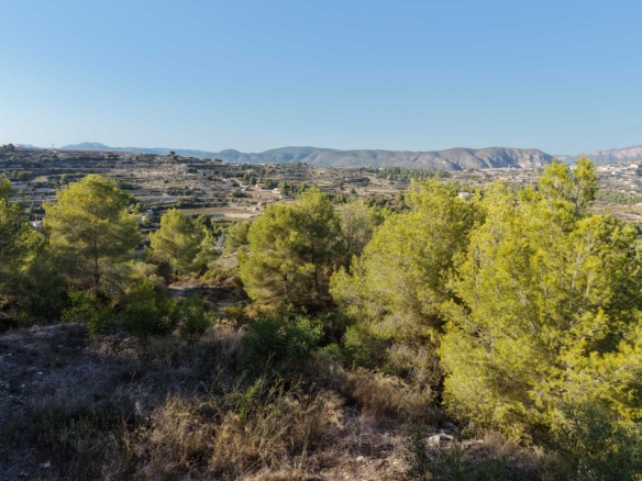Dieses Grundstück bietet einen völlig freien Blick auf das Tal und vermittelt ein Gefühl von außergewöhnlicher Großzügigkeit und Privatsphäre. Von der erhöhten Lage aus hat man zudem teilweise Meerblick – ideal, um mediterrane Sonnenaufgänge und goldene Sonnenuntergänge zu genießen.