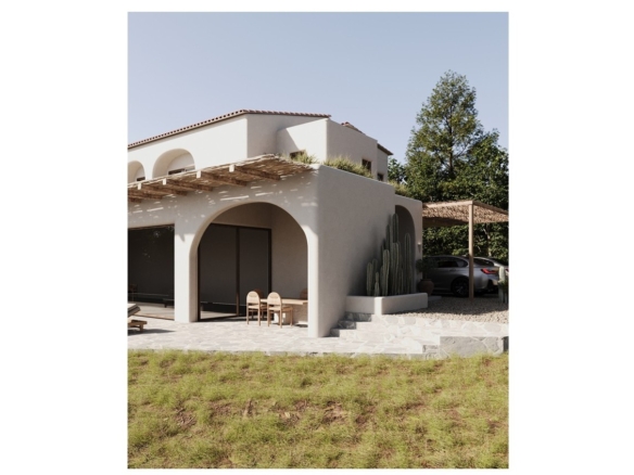 2. Integrale Renovierung & Erweiterung – Es liegt bereits ein Basis- und Ausführungsprojekt vor, mit dem Sie die Immobilie komplett in eine moderne Villa im Ibiza-Stil mit mediterranem Charme verwandeln können. Die Renderings und Pläne veranschaulichen diese Option.