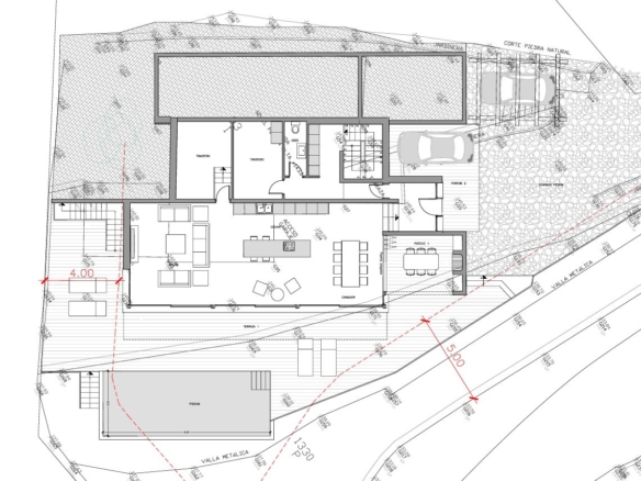 Auf dem Grundstück befindet sich derzeit eine traditionelle Villa mit einer bebauten Fläche von 117 m². Für dieses Grundstück gibt es drei interessante Entwicklungsmöglichkeiten: