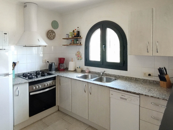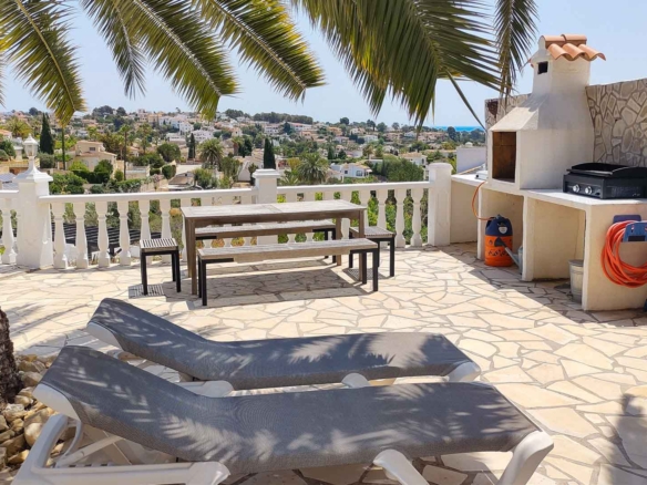 Nur 1,5 km entfernt befindet sich die malerische Cala Baladrar, und in der Nähe können Sie die wunderschönen Strände und Buchten von La Fustera, Cala Advocat und Moraira entdecken. Der Flughafen Alicante ist eine Autostunde entfernt, der Flughafen Valencia eine Stunde und 15 Minuten – ideale Voraussetzungen also für Urlaube und längere Aufenthalte. Die Villa steht auf einem 1.010 m² großen Grundstück und bietet 224 m² Wohnfläche auf zwei Etagen. Im Obergeschoss (auf Höhe des Pools) befindet sich der Hauptwohnbereich: ein helles Wohnzimmer mit Kaminofen, ein gemütliches Esszimmer, eine voll ausgestattete Küche und zwei Schlafzimmer mit Klimaanlage (warm/kalt) und Jalousien sowie ein Badezimmer. Der Kaminofen sorgt für behagliche Wärme im Winter, was besonders von Gästen außerhalb der Saison geschätzt wird.