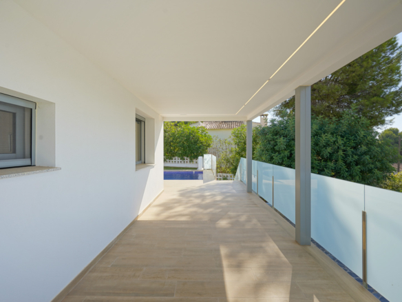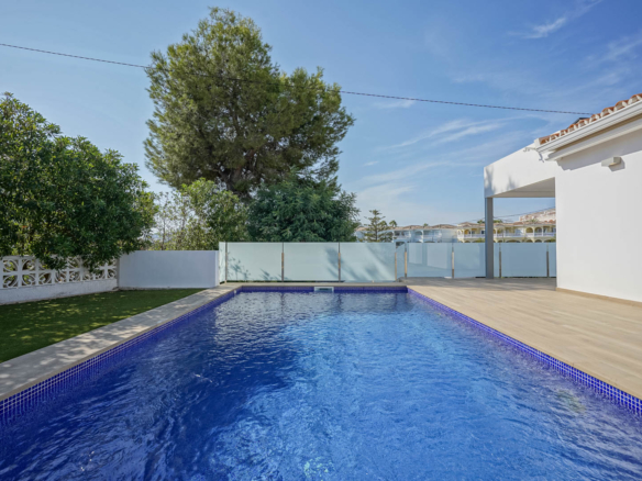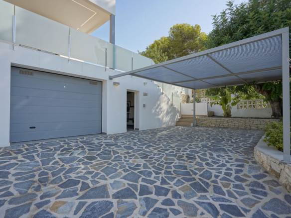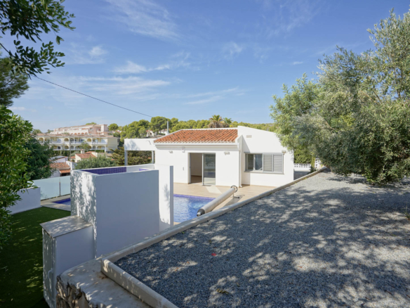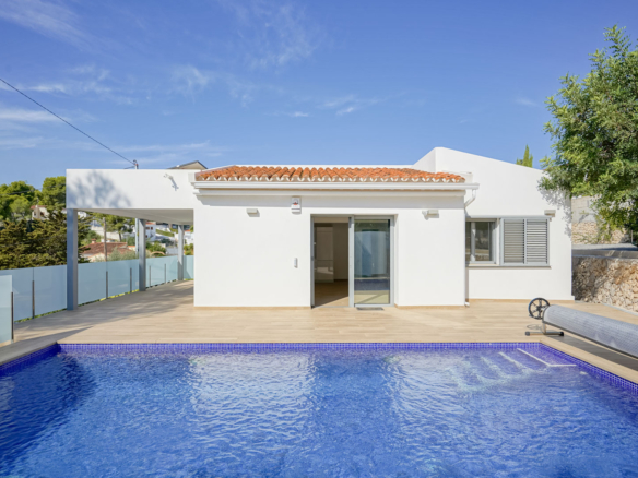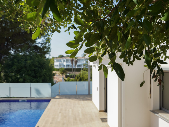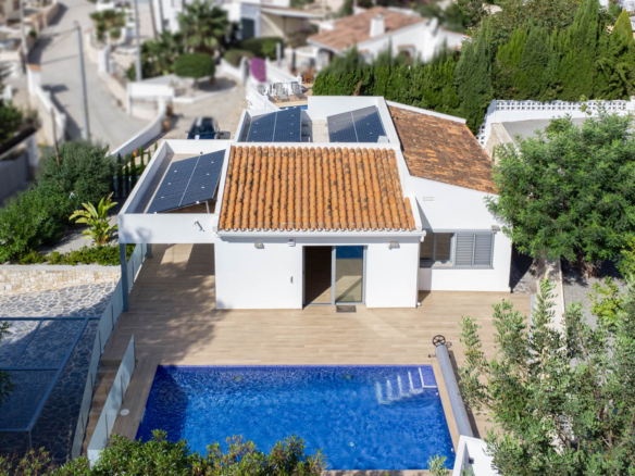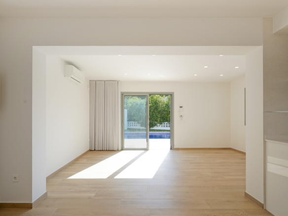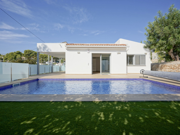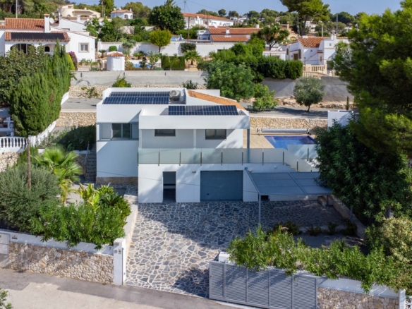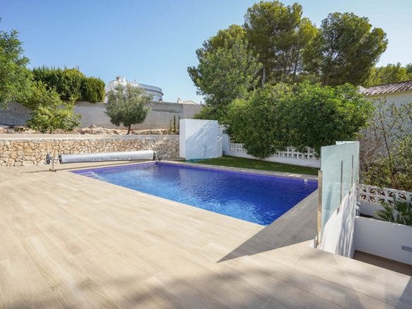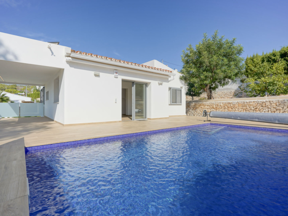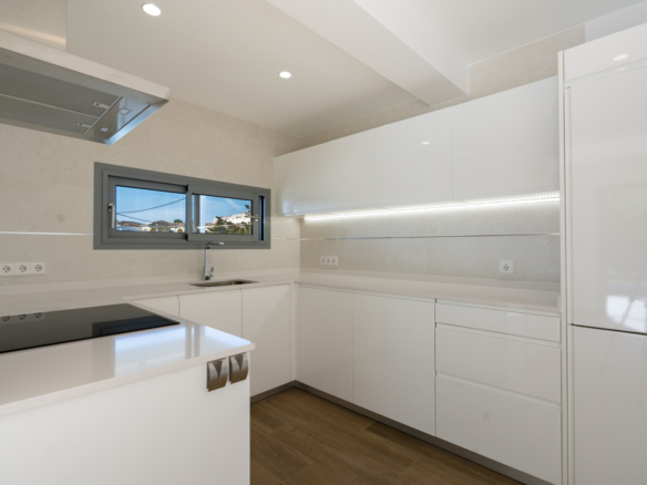 Diese schlüsselfertige Villa befindet sich in eine Sackgasse in der ruhigen Urbanisation La Fustera, nur einen Kilometer von der wunderschönen Küste von Benissa entfernt. Das Haus wurde 2023 komplett renoviert und erstreckt sich über zwei Etagen.
