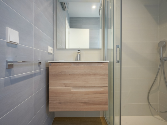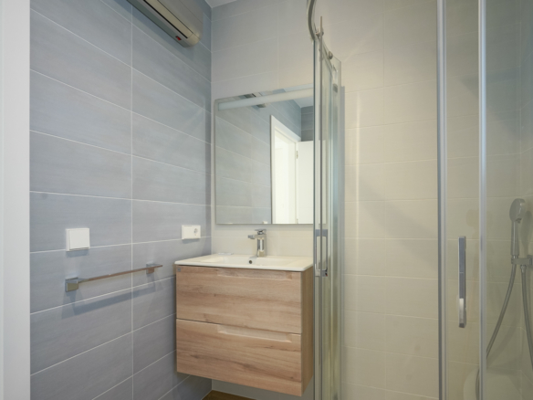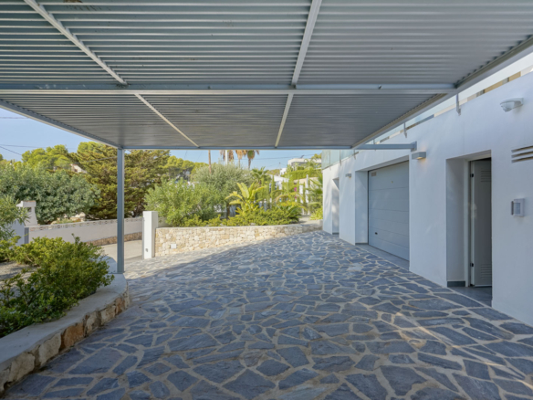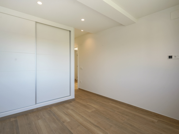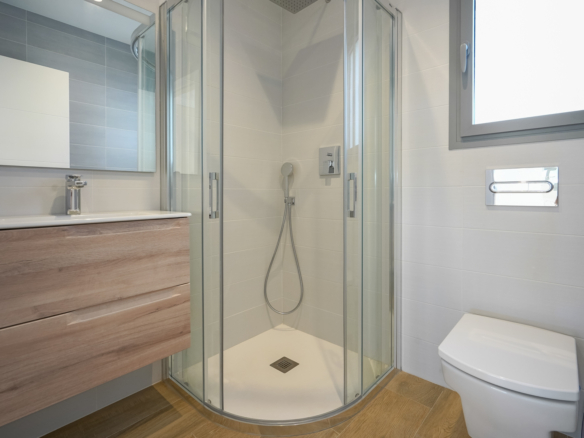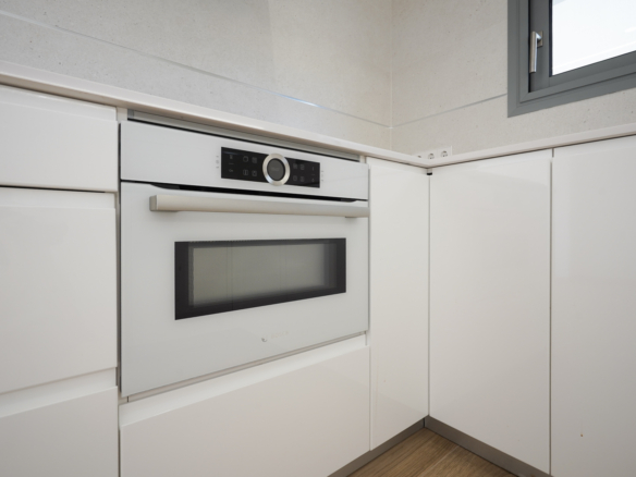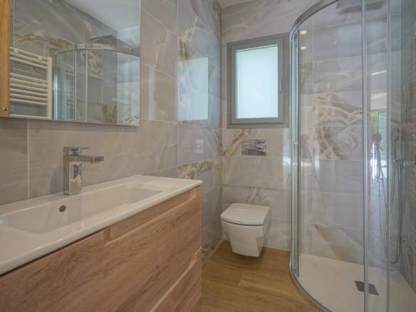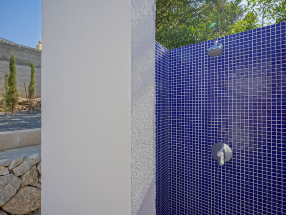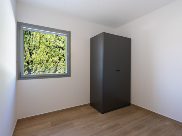Der gesamte Wohnbereich befindet sich auf der Ebene des Swimmingpools und umfasst ein geräumiges Wohn- und Esszimmer mit offener Küche, die mit einem multifunktionalen Bosch-Backofen, einem Geschirrspüler, einem Kühlschrank, einem Gefrierschrank und einem Induktionskochfeld ausgestattet ist. Darüber hinaus gibt es ein Hauptschlafzimmer mit eigenem Bad und zwei weitere Schlafzimmer, die sich ein zweites Badezimmer teilen.