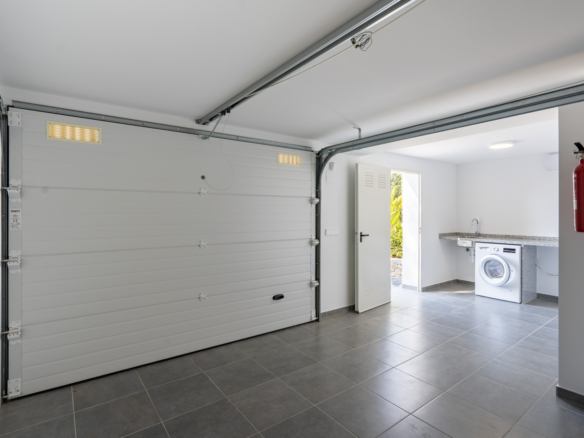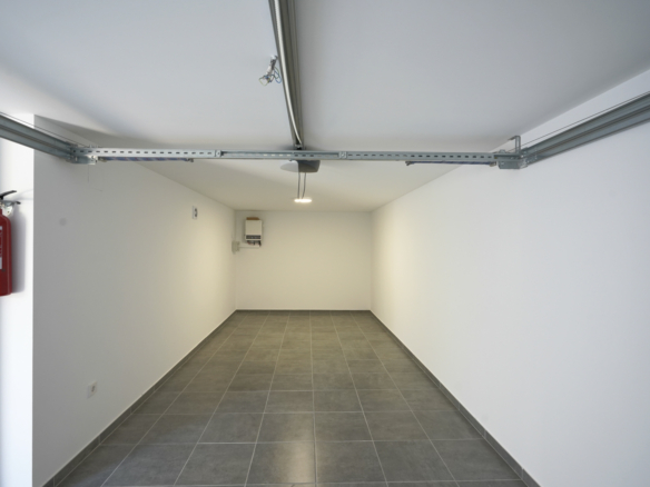 Eine Etage tiefer, auf Straßenebene, befindet sich eine geräumige Garage mit angrenzendem Waschraum, einem Technikraum und einem Carport.