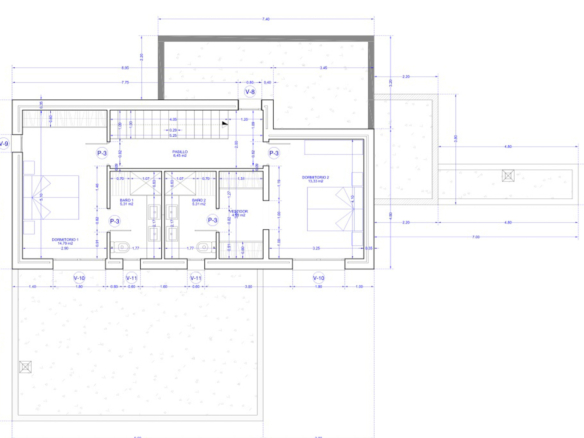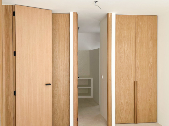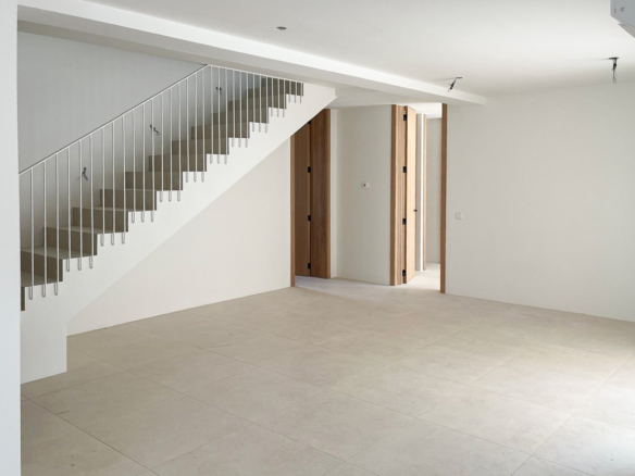 Über die Treppe gelangt man in das Obergeschoss, wo man von einem eleganten Flur empfangen wird, der zu zwei großzügigen Doppelschlafzimmern führt, beide mit eigenem Bad. Eines von ihnen verfügt außerdem über ein praktisches Ankleidezimmer, das dem Ganzen Komfort und Funktionalität verleiht.