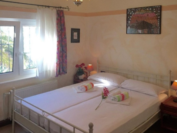 Dieses schöne Ferienhaus liegt am Ende einer Sackgasse in einer ruhigen Wohngegend, nur wenige Gehminuten vom Strand entfernt. Das gepflegte, einstöckige Ferienhaus verfügt über ein Wohn-/Esszimmer, drei Schlafzimmer, eine Küche und zwei Bäder auf 120 Quadratmetern Wohnfläche. Draußen gibt es einen mediterranen Garten mit einem Swimmingpool und einer Außendusche, mehrere Terrassen und einen gemauerten Grillplatz. Es gibt einen Parkplatz für bis zu 4 Autos, von denen 2 überdacht sind. Von der Dachterrasse haben Sie einen schönen Blick auf das Meer und den Peñon de Ifach. Die nächstgelegene Badestelle (Stein- und Felsstrand) ist etwa 12 Gehminuten entfernt. Sandstrände finden Sie in Moraira (ca. 3,9 km), Fustera (ca. 5,0 km) und Calpe (ca. 9,1 km).