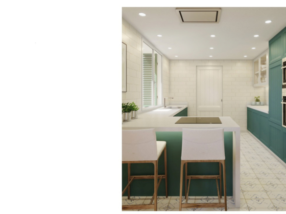 Die Innenräume der Villen bieten eine ruhige und komfortable Atmosphäre. Große Fenster lassen viel Tageslicht herein, wodurch alle Räume hell und einladend wirken. Der Wohn- und Essbereich ist mit warmen Farben, mediterranen Elementen und natürlichen Materialien gestaltet und schafft eine angenehme und wohnliche Stimmung. Die Küchen sind praktisch eingerichtet und verfügen in jedem Modell über eine angrenzende Hauswirtschaftsraum. Jede Villa verfügt über drei moderne Badezimmer und ein Gäste-WC. Sowohl die Doppelhaushälften als auch die freistehenden Villen sind nach Süden ausgerichtet und verfügen neben einem Privatgarten über eine Terrasse mit Pergola. Zur Wohnanlage gehört außerdem ein Gemeinschaftspool mit 75 m², schattige Bereiche, Sonnenliegen und gemeinsames WLAN. Zur Deckung des Energieverbrauchs der Gemeinschaftsbereiche werden Solarzellen installiert.