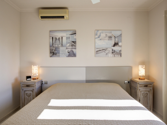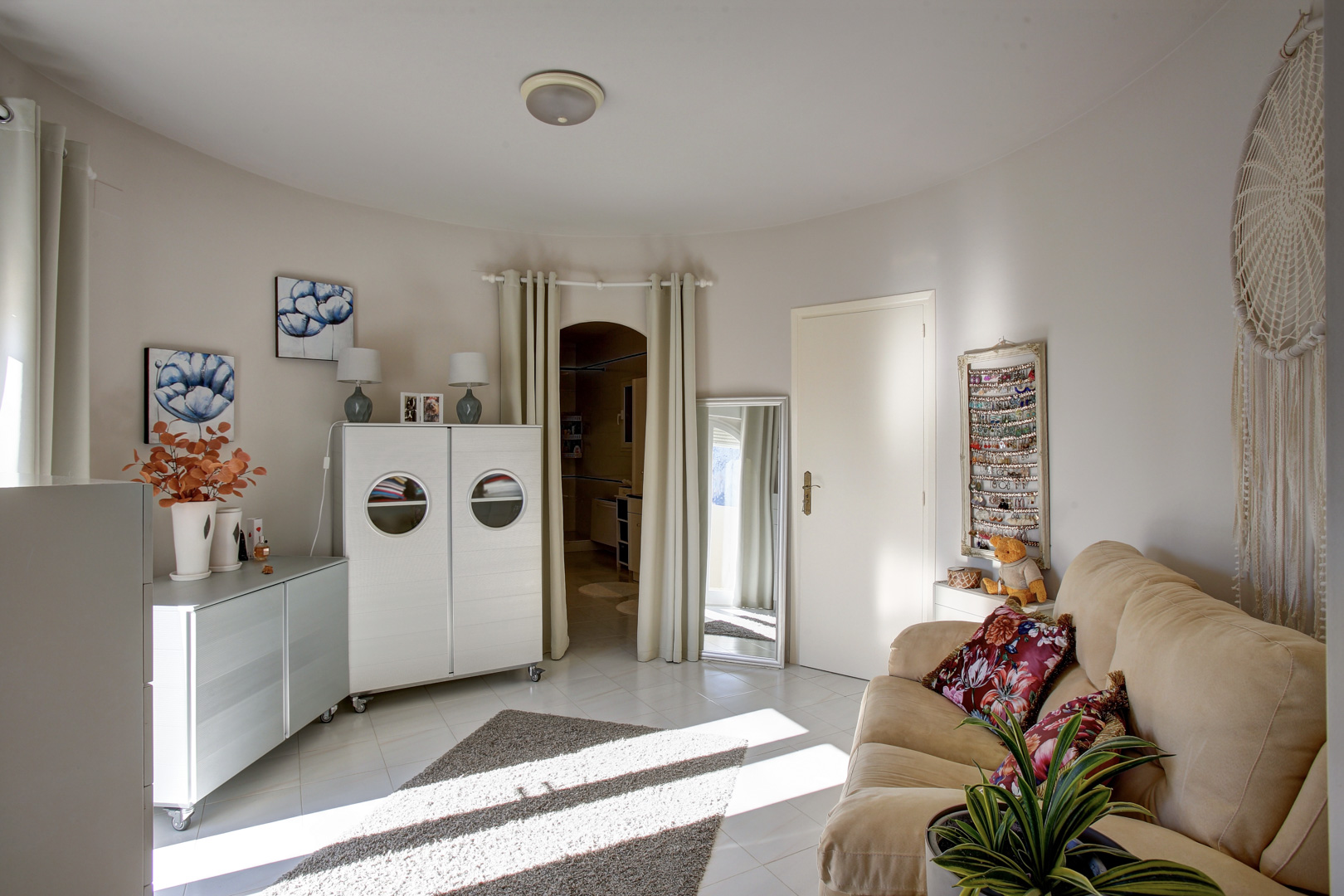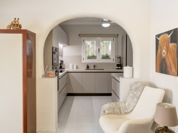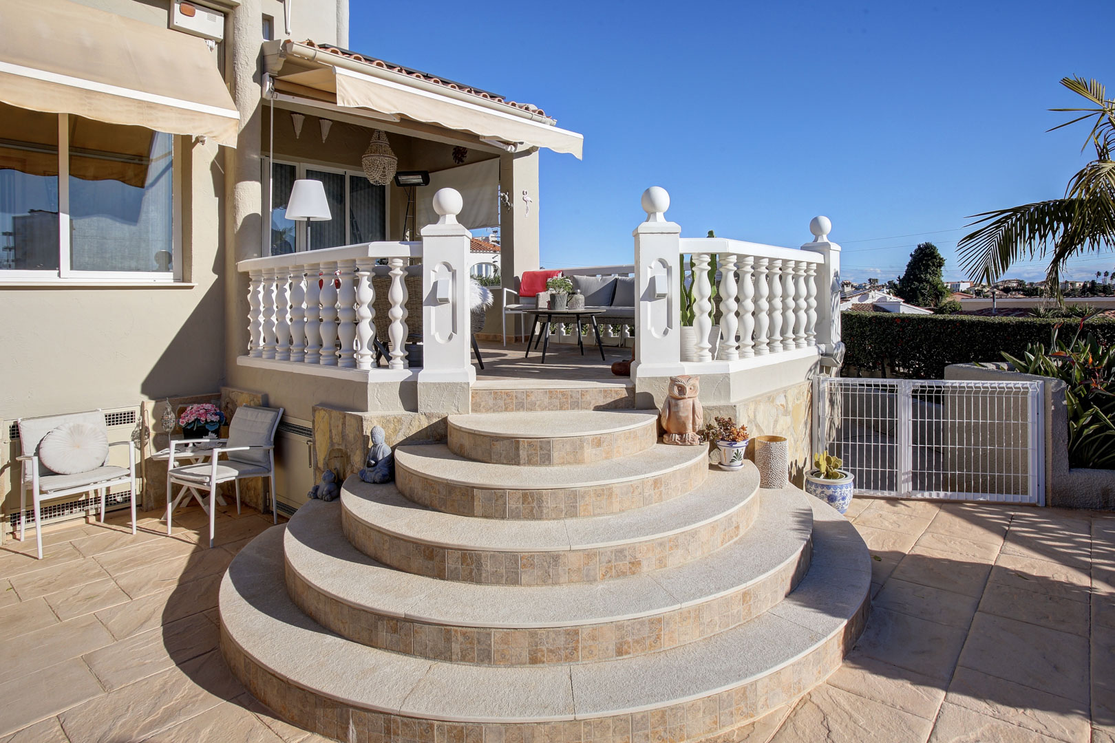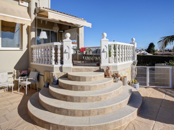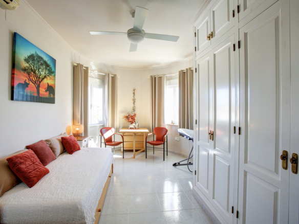Das Haus hat zwei Etagen und verfügt über 4 geräumige Schlafzimmer, 3 komplette Badezimmer, ein elegantes Wohn-Esszimmer mit direktem Zugang zur Terrasse, eine moderne, voll ausgestattete Küche und ein Büro, das sich perfekt für komfortables Telearbeiten eignet.