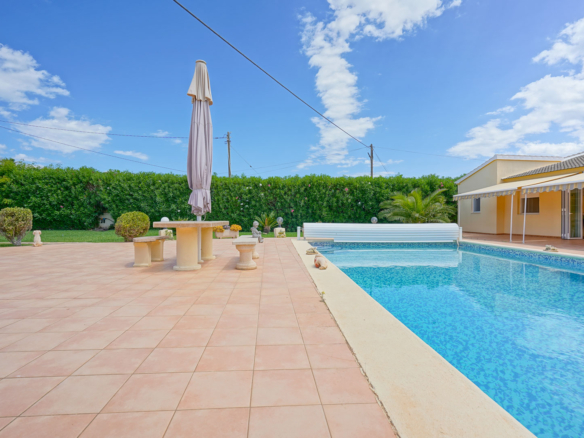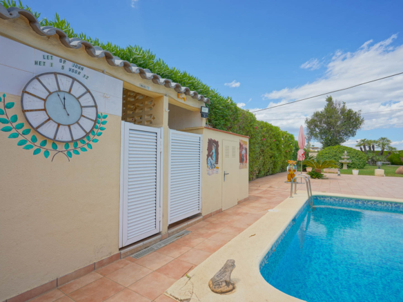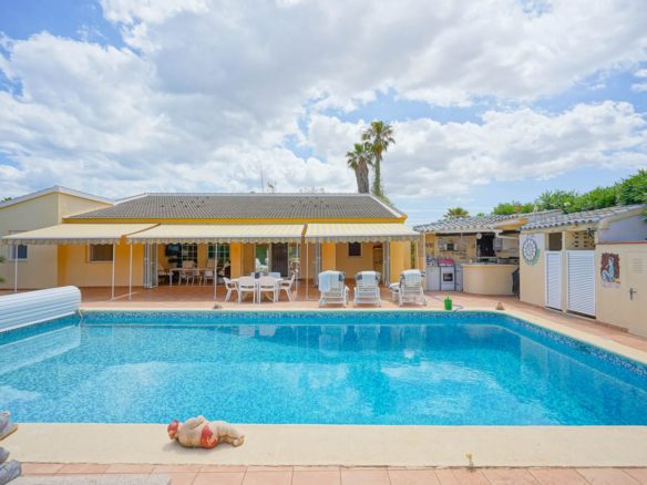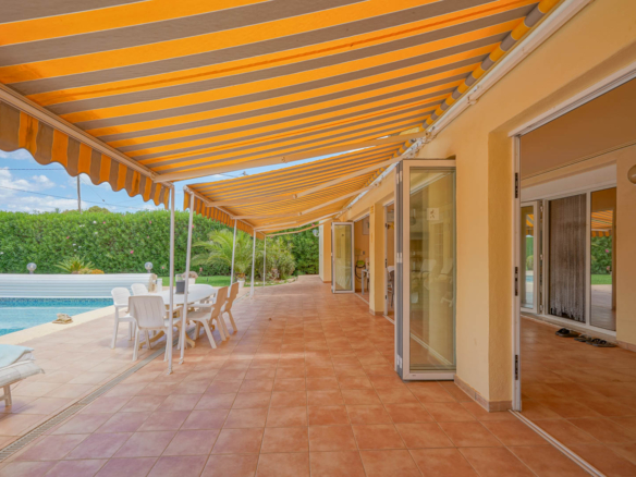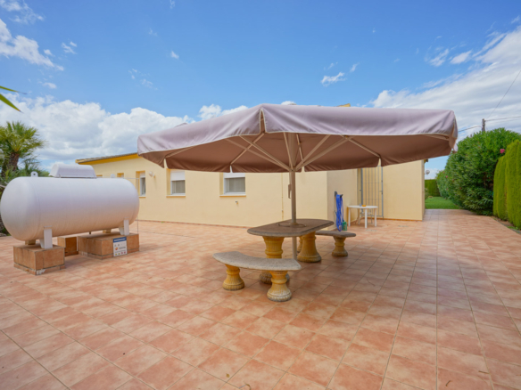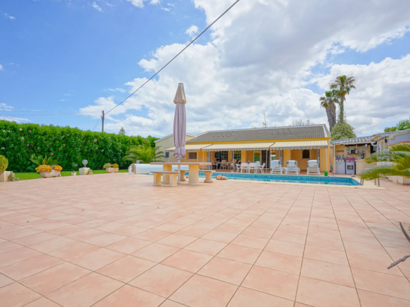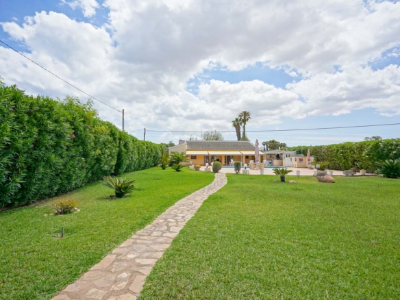 This villa is located on a flat, sunny plot of 2000 m², near the village center of Els Poblets and just one km from the beach. The villa is divided into two houses that are connected but each has its own access.