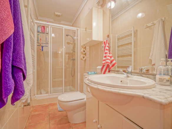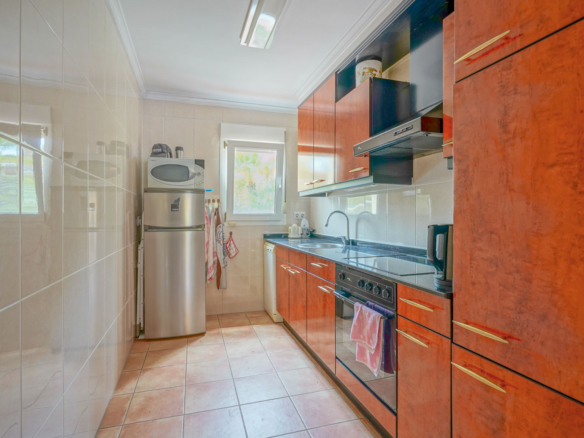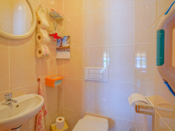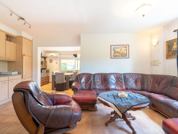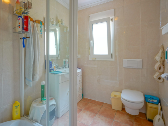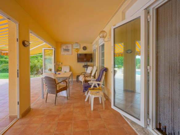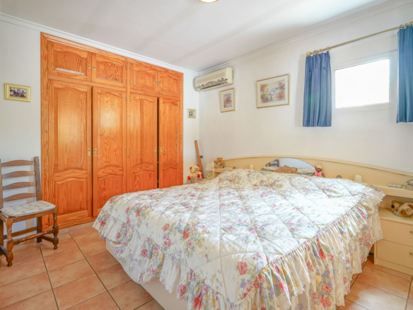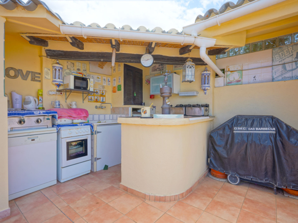 The main house consists of a living-dining room, a kitchen, three double bedrooms, a bathroom and a guest toilet. In addition, there is a large covered terrace that can be fully enclosed. The second house has a living-dining room with an open kitchen, two double bedrooms, a bathroom and a guest toilet. The entire villa has underfloor heating, air conditioning, double glazing, shutters and mosquito windows.