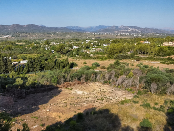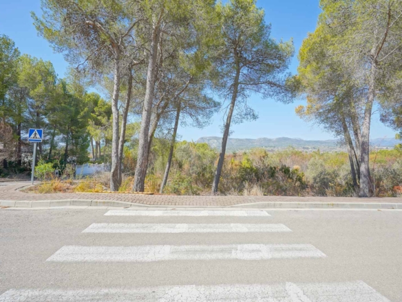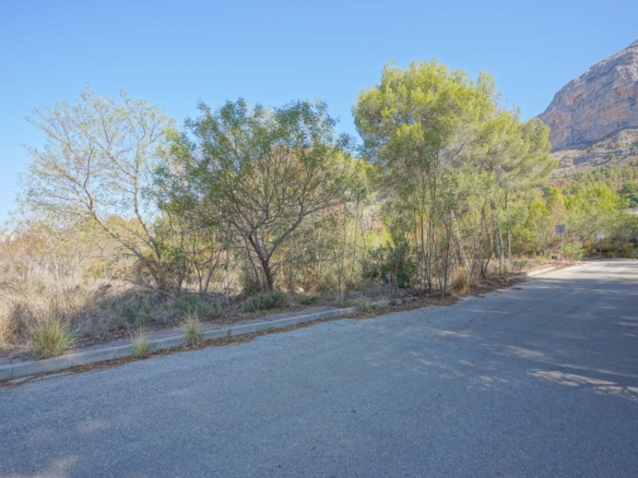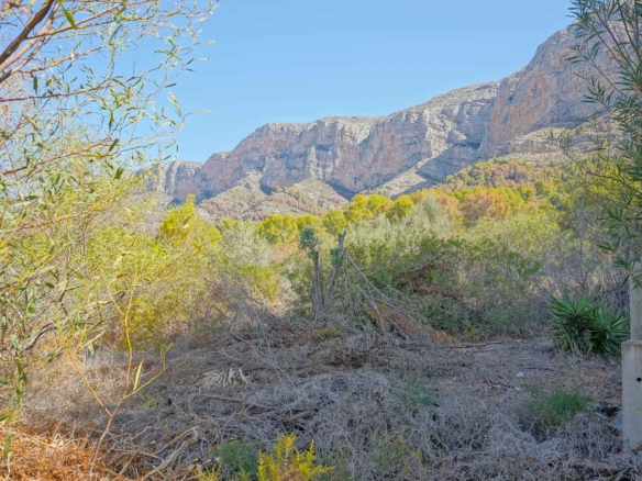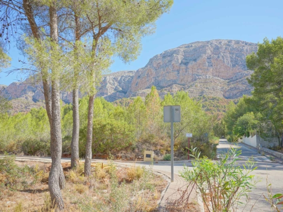 This large plot is located on the southern flank of the Montgó. On the south side there are beautiful open views over the valley and the mountains, and on the north side you can enjoy the impressive cliffs of the Montgó up close. The plot is slightly sloping and located on the corner of two streets that are already fully urbanised.