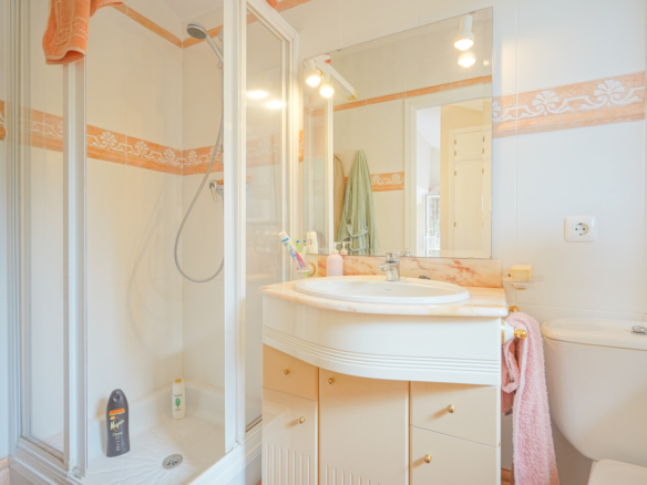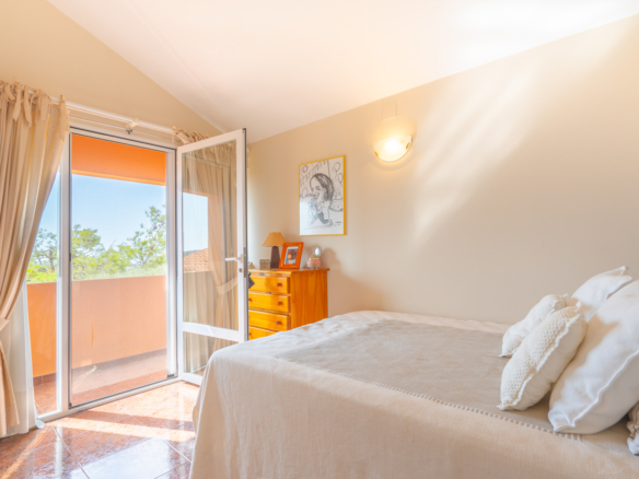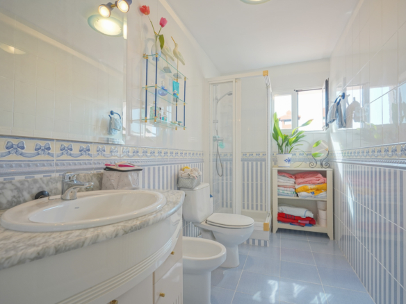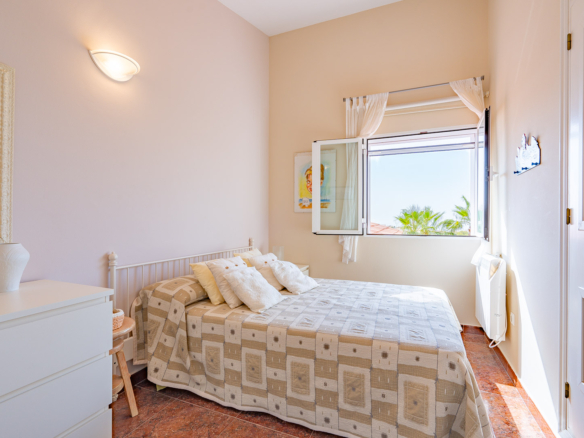 On the first floor is the master bedroom. This bedroom has a dressing area, an en suite bathroom and a private balcony with sea views. There are also three additional bedrooms, which share a bathroom.