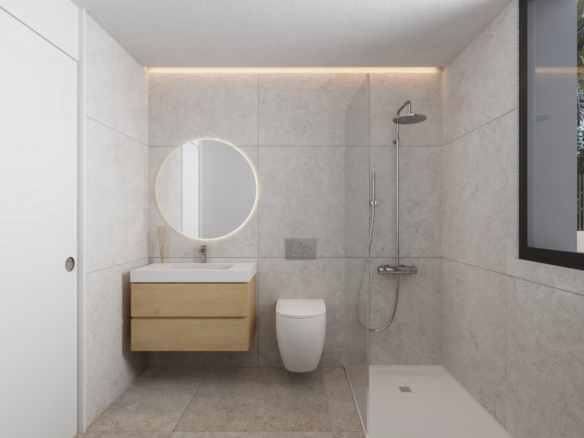 The villas will be equipped with a fully fitted open kitchen with BOSCH built-in appliances, granite worktop and a cooking island with an induction hob. The bathrooms will be fitted with high-quality bathroom furniture from the Porcelanosa brand and a modern rain shower.