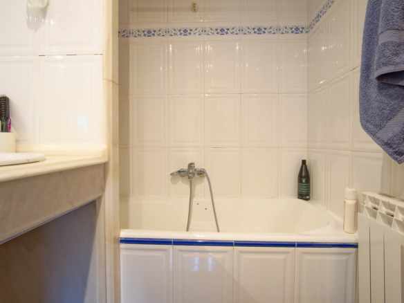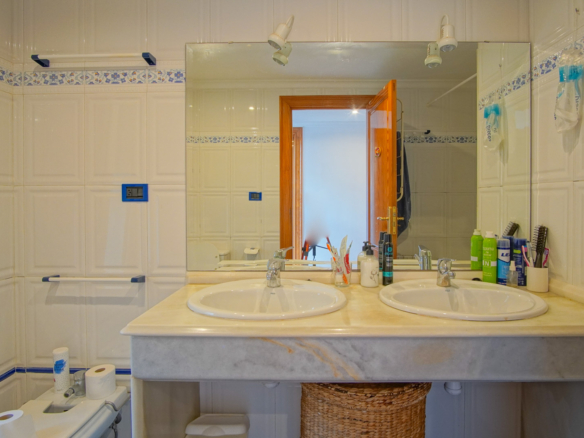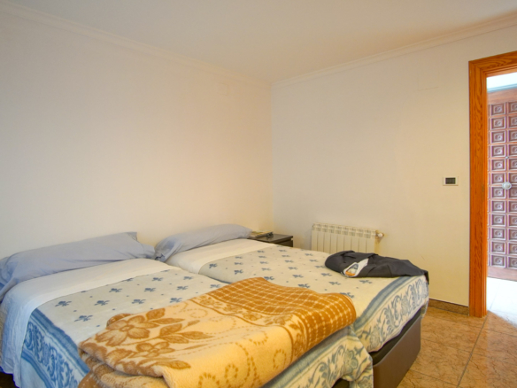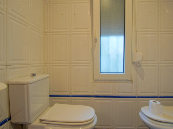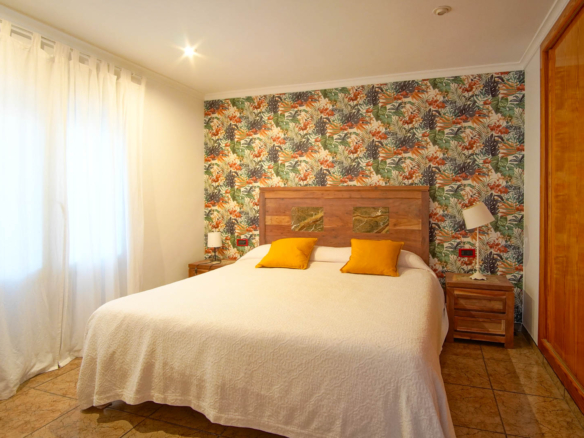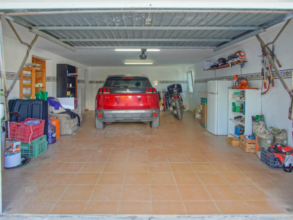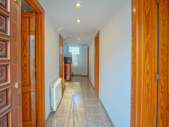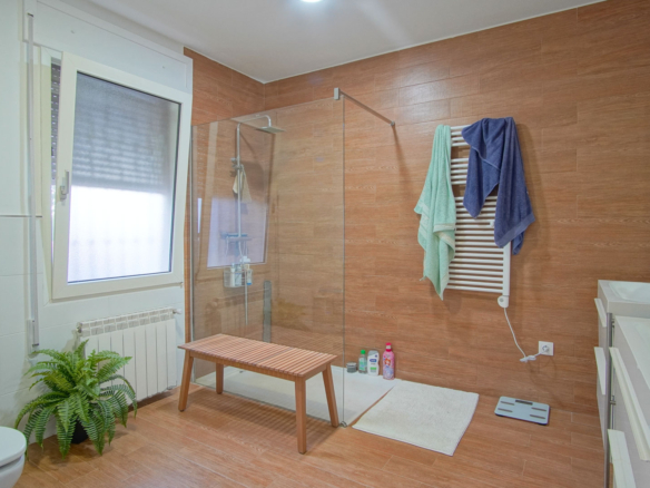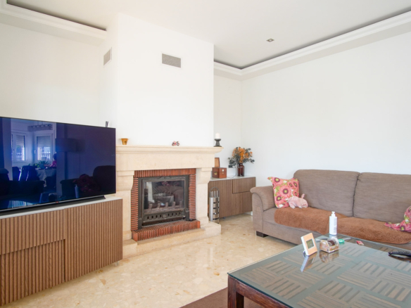 The ground floor is accessed via a terrace. Here we find the heart of the house, with a spacious living room with fireplace, a separate dining room and a large separate kitchen. Also on this floor are three double bedrooms with fitted wardrobes and a full bathroom. The large windows and sliding doors let in plenty of natural light, creating a warm and welcoming atmosphere.