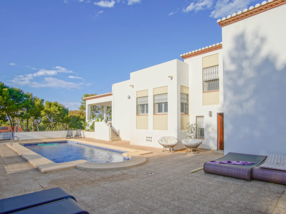 Discover luxury and comfort in this charming detached villa, located in the prestigious neighbourhood of Las Rotas, Dénia. This property is located on an urban plot of 1,229 m², with an adjacent protected plot of 4,338 m² belonging to the Montgó Natural Park, totalling around 5,500 m². This privileged location offers incomparable natural surroundings, with partial views of the sea and the impressive Montgó. The exterior of the house is surrounded by several terraces and gardens that provide a Mediterranean charm, with a large private pool perfect for enjoying the sunny weather. The barbecue area is ideal for family and social gatherings, while the fronton court adds a sporting touch to this beautiful property. In addition, the garden has numerous fruit trees and sitting areas for relaxing moments.