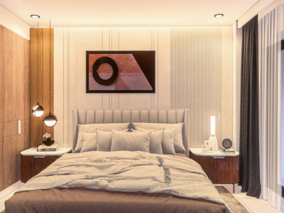 In terms of technical specifications, the villa is equipped with minimum 4/6/4 UV protection glass, ensuring natural light without compromising your well-being. The white solid wood interior, with brushed steel handles, adds a touch of elegance to every corner of the house. In addition, the rotating brake system on the wardrobe doors ensures smooth and silent operation.