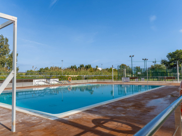 The property is located within a private complex with excellent facilities: outdoor and children’s swimming pools, a heated indoor pool, a paddle tennis court, a children’s playground, private parking, and 24-hour security, guaranteeing safety and comfort throughout the year.