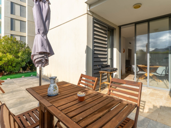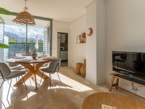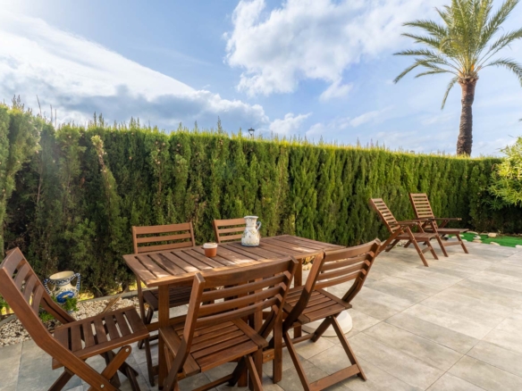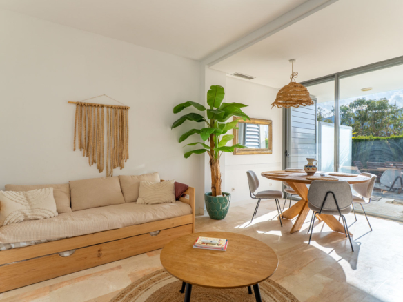 One of its greatest attractions is the 35 m² private garden, a perfect space to relax outdoors, enjoy the Mediterranean climate, or let children play safely. The property also features air conditioning, ultra-fast Wi-Fi, and a private parking space.