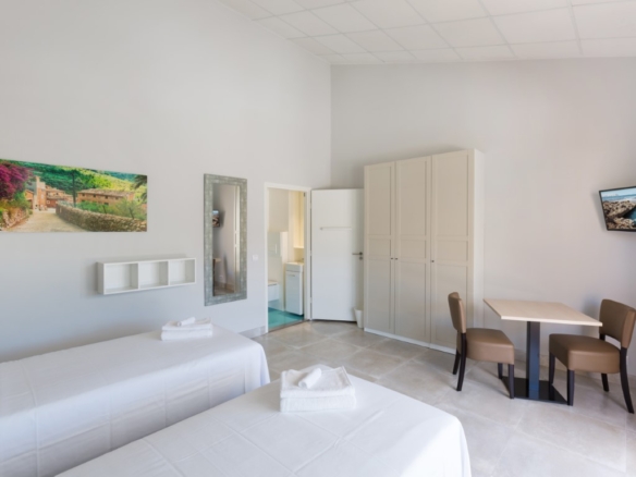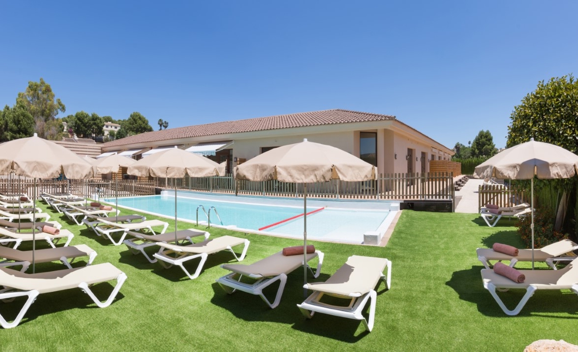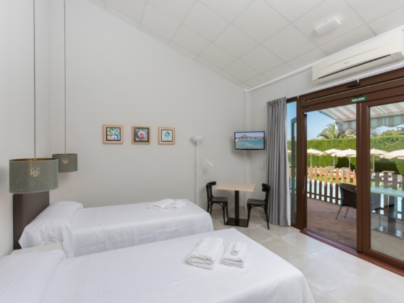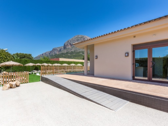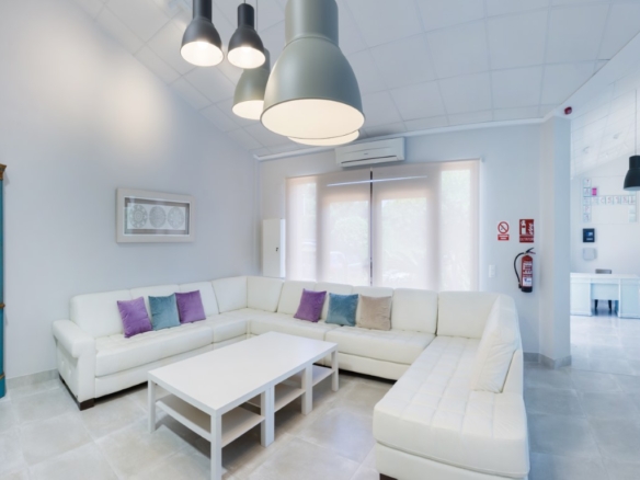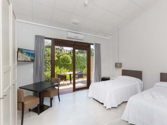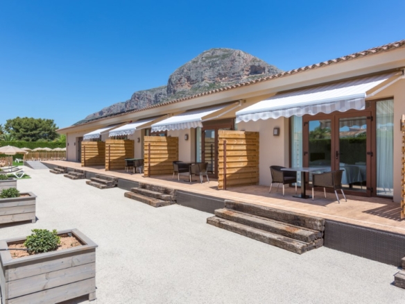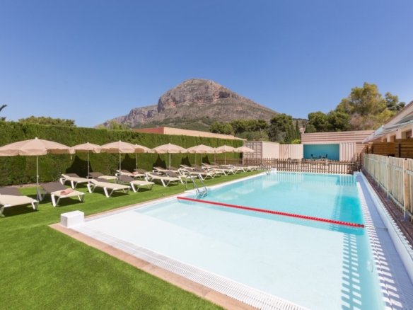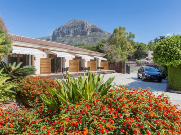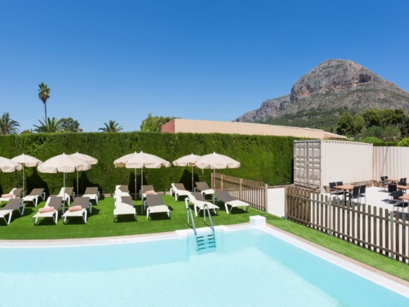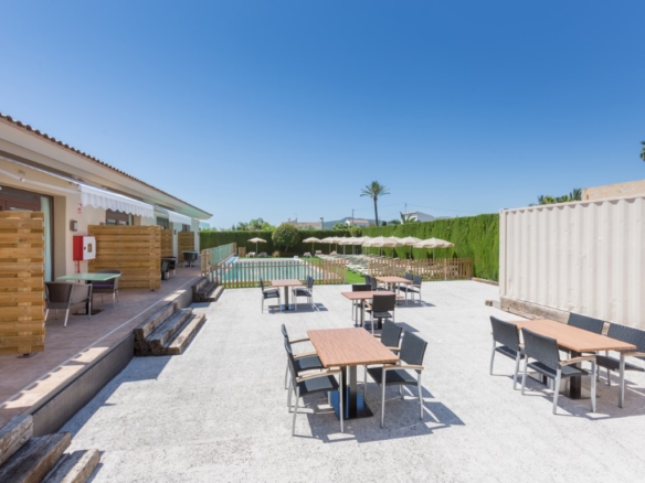 Hotel for sale in Javea, located close to the historic center and 5 minutes from the beaches. The hotel is only recently in use and in perfect condition, it has 16 rooms, 1 of which is for disabled people. There is also a reception, a lounge, a dining room, toilets and a double kitchen. Outside there is a swimming pool with a terrace with sun beds and parasols and there is a second communal terrace with tables and chairs. There is also ample parking to park the cars of the guests on the domain. Each room has 2 beds, Smart TV, WIFI, air conditioning, safe, fridge, hairdryer, bathroom and is accessible from outside. They all have a separate terrace with awning and a table with chairs. Furthermore, there is a basement of 610m2 which is accessible by elevator and stairs, here one can build more communal areas such as a cinema, gym, … There are solar panels for the supply of hot water and photovoltaic solar panels for the supply of green energy to keep the energy bill low.