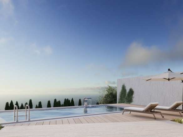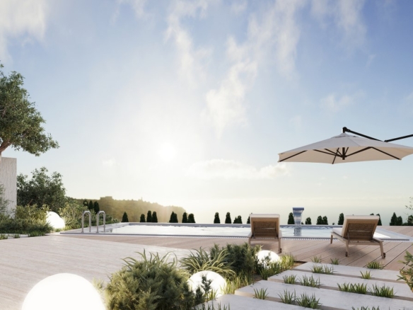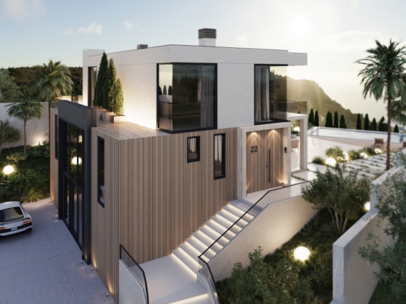 This luxurious villa is situated in a unique location at the foot of the majestic Sierra de Olta mountain range. On the east side there are beautiful panoramic views of the sea, the town of Calpe and the Peñon de Ifach, and on the west side there are impressive views of the mountains. The villa is spread over two floors and has a south-east orientation. The ground floor consists of a very spacious living-dining room with an open kitchen (pre-installation only), a laundry room, a guest toilet and an office space. The upper floor consists of two double bedrooms, both with an en suite bathroom and a private terrace and two double bedrooms with a shared bathroom. The entire villa has ducted air conditioning hot/cold and underfloor heating is installed in the bathrooms. There is also a pre-installation for a lift. Outside, there is a large terrace partly covered with a 4 x 10 m pool, a pre-installation for an outdoor kitchen and an outdoor bathroom. The villa is surrounded by a standard Mediterranean garden and has an automatic gate giving access to a large parking area for several cars. The beach and the centre of Calpe can be reached in just 10 minutes. On the other side of the street is the entrance to the beautiful Sierra de Olta nature reserve where several hiking trails run through the forests and mountains. This is a unique opportunity to buy a luxurious villa on a fantastic location! Don’t miss the opportunity! More information on request.