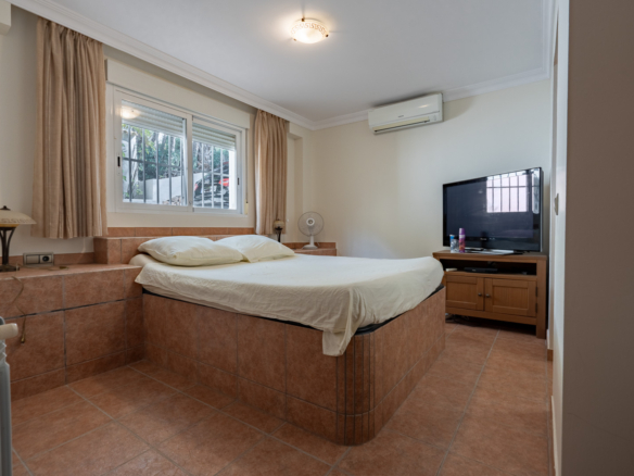 The villa was built in 2004 and always very well maintained. Thanks to a clever layout, the entire private residence of 173 m2 is located on one floor adjacent to the pool. One floor below is a spacious separate guest house of 113 m2 and a separate room that can be converted into a studio. The guest house is internally connected to the upper floor, but also has private access.