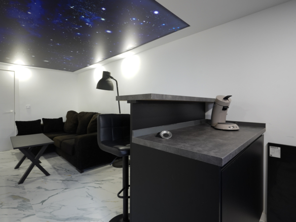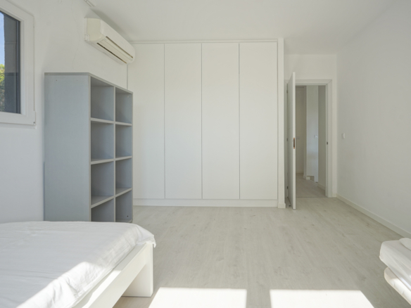 The ground floor forms a completely independent guest house with a living room, open kitchen, three bedrooms and a bathroom. Perfect for family, friends or as a rental opportunity. The guest house is both internally connected to the main house and accessible via a private entrance. Two of the three bedrooms have direct access to the terrace by the pool.