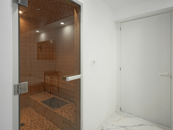 The villa also has a garage, currently furnished as an extra kitchen and storage space. Furthermore, the property is equipped with air conditioning, double glazing (Climalit), a solar water heater and a sauna.