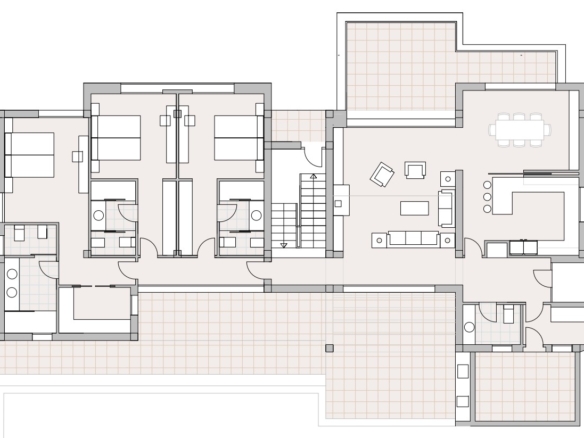 This beautiful Ibiza-style villa is built on a 1514 m2 plot in the modern quiet residential area of Valsol in Jávea. With a double orientation, you will enjoy all-day sunlight and views of the majestic Montgó and rolling countryside. The ground floor comprises a very spacious living-dining room, complete with an open-plan kitchen, which comes fully equipped. The living room, bathed in natural light thanks to its double orientation, is perfect for relaxing and entertaining. In addition, there are three more double bedrooms on this floor, each with an en suite bathroom and a guest toilet. On the upper floor is another fourth double bedroom with an en suite bathroom, a dressing room and two large private terraces where you can enjoy the beautiful views. Outside, an oasis of relaxation awaits with an inviting swimming pool surrounded by an 80m2 terrace with an outdoor kitchen and an 18m2 covered terrace, ideal for outdoor dining and lounging. A spacious driveway with a stylish pergola provides ample parking for several vehicles. This dream villa is just a 10-minute drive from both Jávea’s sandy beach and charming historic centre. Moreover, two international schools are within easy reach, less than 2 km away. Don’t miss this unique opportunity to live in luxury and comfort in a prime location on the Costa Blanca!