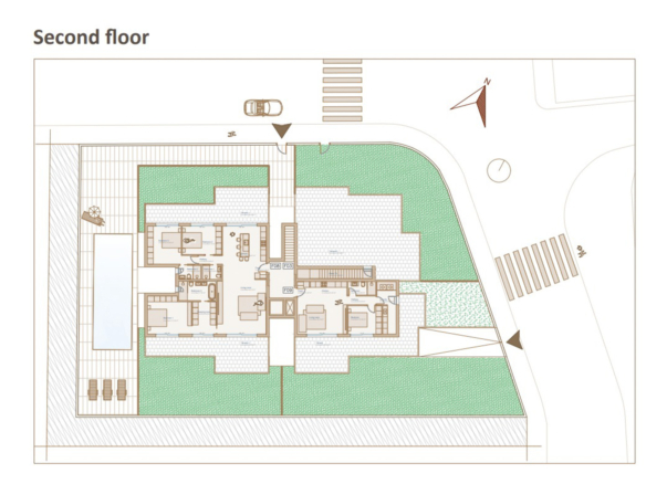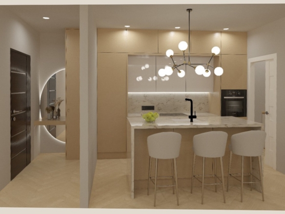 All apartments have an entrance hall, a spacious living-dining room with open kitchen and cooking island, a laundry room, three double bedrooms and two bathrooms.