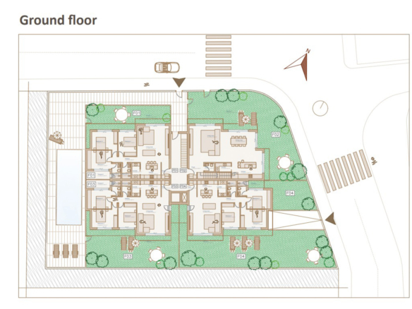 There are 6 apartments still available: three apartments with a private garden and three apartments on the first floor.