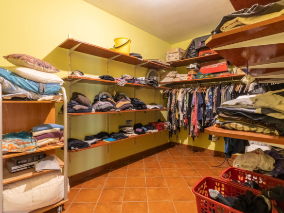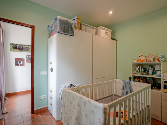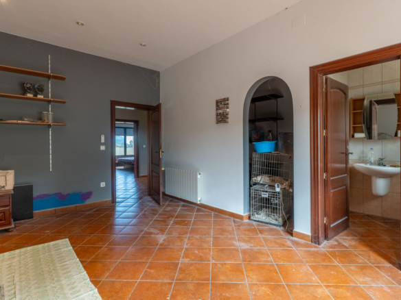 The main house, distributed over three levels, combines spaciousness and warmth. On the ground floor, a large living room, office, dressing room, toilet, and kitchen with pantry offer perfect spaces for both relaxation and entertaining. On the upper floor, four bedrooms with en-suite bathrooms and dressing rooms open onto a spectacular terrace that wraps around the entire house, where the views of the valley, the pool, and the gardens become a daily spectacle. On the lower level, the basement houses a covered garage, a large storage room, and a wine cellar that connects to the main living room via a spiral staircase, perfect for wine lovers and good times.