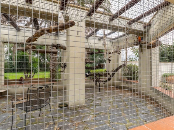 The estate consists of a main house, a separate guest house, and several covered parking spaces, all designed for worry-free enjoyment of the space and nature.