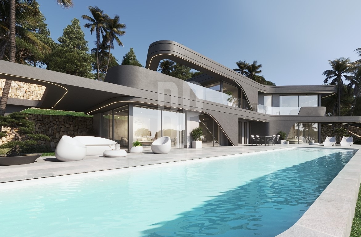 Modern new build villa with sea view for sale in Javea, located in a modern urbanization with all the necessary infrastructure. The villa is spread over 3 floors, on the ground floor there is an entrance hall with a guest toilet, a spacious living room with a fully equipped open kitchen and a double bedroom with en suite and access to the terrace. From the living room you enter the terrace from where you have a beautiful view of the sea. On the first floor there is the master bedroom with walk-in closet and en suite bathroom, there is also a double bedroom with en suite. In the basement there is the fourth double bedroom with en suite and patio, there is also a space available on this level that can be used as a GYM, home cinema, storage room. In the Mediterranean garden there is a carport for 2 cars.