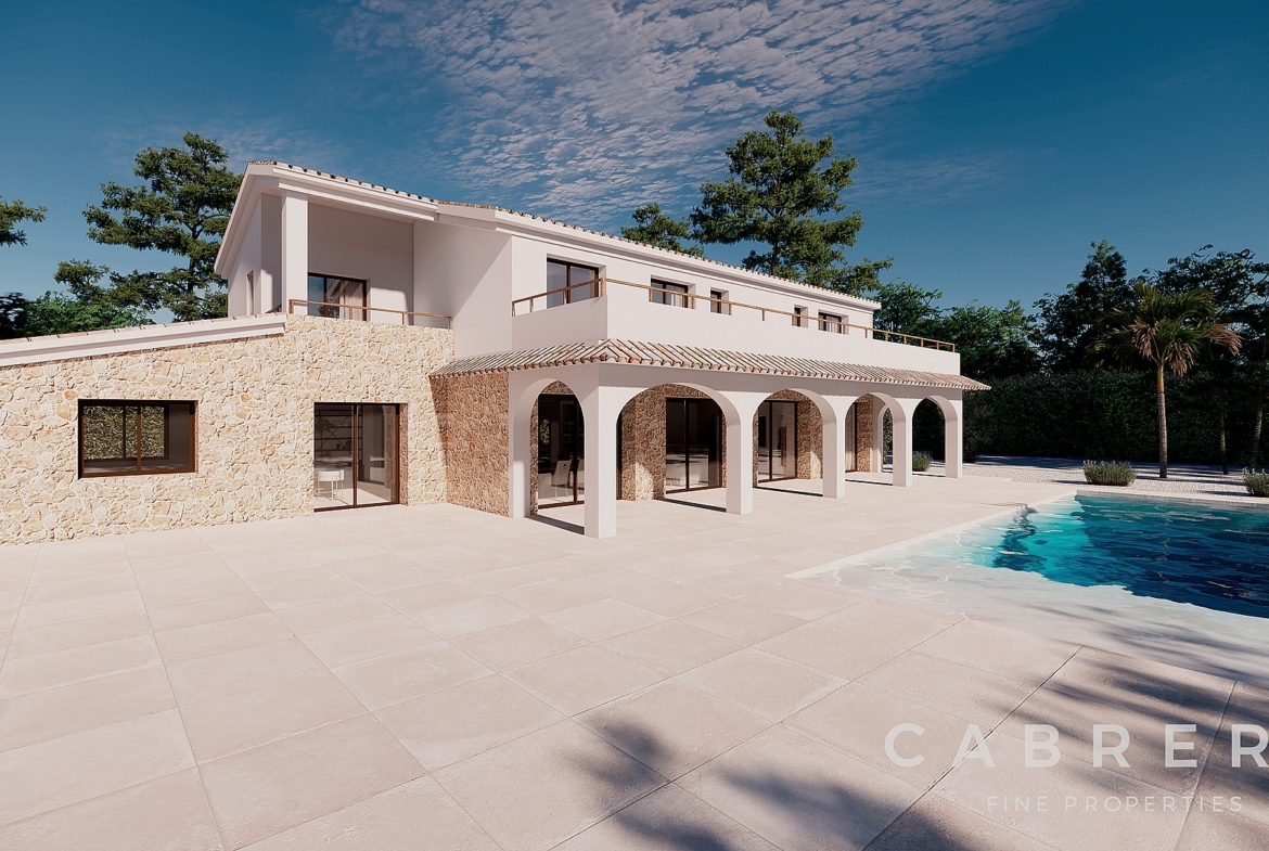 This beautiful finca will built on a vast plot of 10,000 m2 in the quiet hilly countryside of Benissa, just 5 km from the coast. The villa will be built with materials of the highest quality and will be finished to the smallest detail. From any room, you will be able to enjoy the panoramic views of the interior to the impressive Sierra de Bernia mountain range. The entire plot will be landscaped with native plants such as palm trees, olive trees, vineyards, orange groves, etc. so that you will be surrounded by an oasis of nature and tranquility. The villa is spread over two floors and the construction will use a Mediterranean style with rustic and modern elements to create a warm atmosphere. You enter the villa in a spacious hall with a guest toilet on the right. Walking further you come to an open living-dining room with an adjacent semi-open kitchen with an island, next to the kitchen is a laundry room. On the other side of the villa is a large double bedroom with an en suite bathroom and dressing room. In addition, there is a very large covered terrace, ideal for having lunch outside in the cool of summer. The upper floor consists of a master suite with an en suite bathroom, a dressing room and a private terrace. In addition, there are two more double bedrooms, both with built-in closets, an en suite bathroom and access to a large communal terrace. The villa also includes a large swimming pool where you can also enjoy beautiful panoramic views. In 10 minutes you can reach several idyllic coves on the coast of Benissa as well as several large sandy beaches in the tourist resort town of Calpe. If you prefer more peace and quiet, you can retire to your beautifully landscaped private grounds and enjoy the Mediterranean climate from your private pool. The villa will be built by a well-known construction company committed to the best quality, with the guarantee of their 45 years of experience, they can build your dream house.