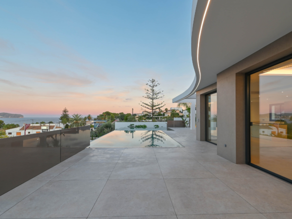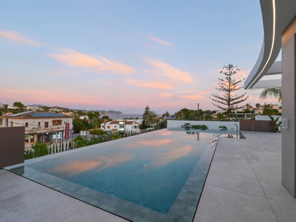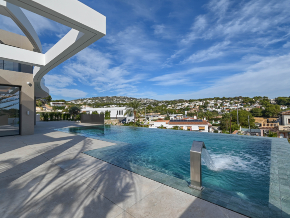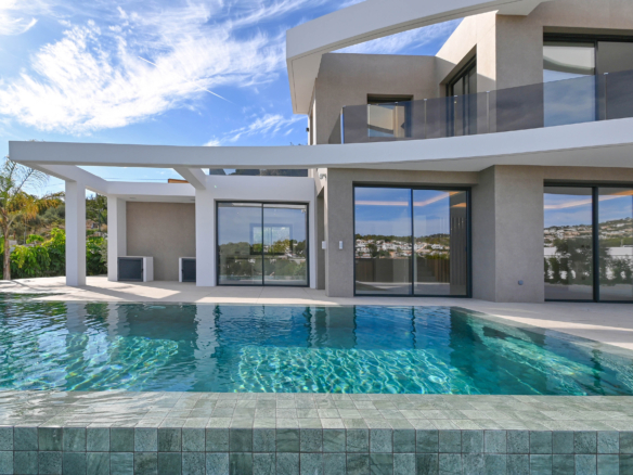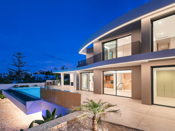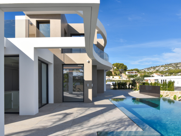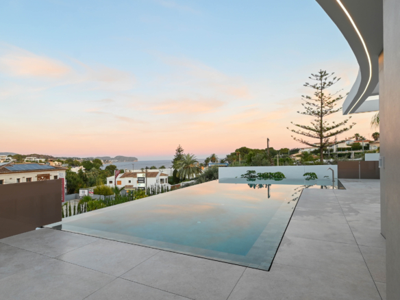 This exclusive villa offers a unique opportunity to enjoy luxury living in a prime location – just 240 metres from the idyllic La Fustera beach and only 2 kilometres from the lively centre of Calpe. With a generous built-up area of 621 m², spread over three floors, you will enjoy breathtaking sea views here, both from the elegant indoor spaces and from the spacious outdoor areas.