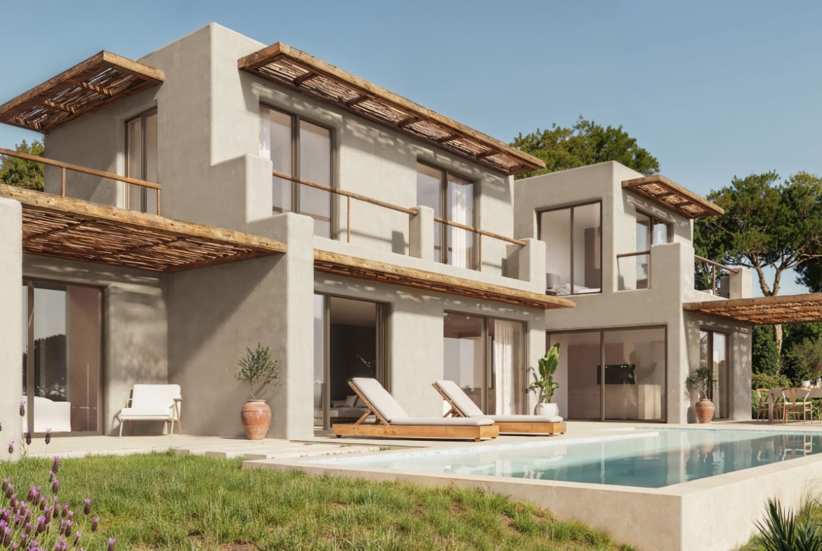 Outside, there is a beautiful swimming pool facing south and surrounded by a spacious terrace with pergolas.