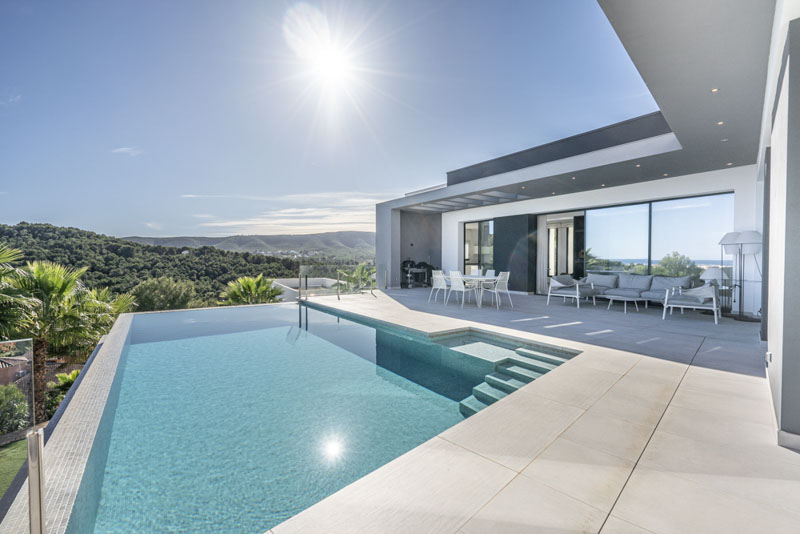 This villa offers the best in comfort and high-end finishes. From the Technal carpentry with safety glass to a fully equipped kitchen with Siemens appliances and bathrooms with prestigious Roca taps, every detail has been carefully taken care of. In addition, it has LED lighting, aerothermal system for hot water and underfloor heating, air conditioning throughout the house,pre-installation of solar panels. Solar panel for domestic water, built-in wardrobes, electric shutters and a complete security system with indoor alarm, pre-installation of outdoor alarm and security cameras.