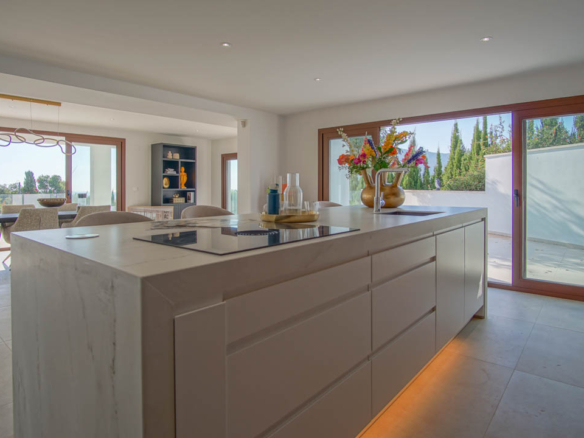 Experience the beauty and comfort of this new 510sq_m designer home with stunning views of the Mediterranean Sea. An elegant villa with a great open plan layout and four bedrooms with ensuite bathrooms and an extra bedroom which can also serve as an office or children’s playroom. The property is built on a flat plot of over 3000 sq_m.
