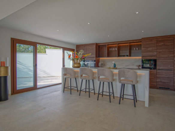 Prepare delicious meals for family and friends in the fully equipped open kitchen with large island and bar area. Adjacent to the kitchen is a guest toilet and a utility room with laundry area. The lower floor of the property is perfect as a guest suite. It has a living area with an open fully equipped kitchen and utility/laundry room with access to the pool. Also on this floor are two bedrooms with private en-suite bathrooms and a separate bathroom.