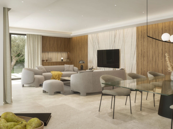 The villa has 204 m² of living space on two floors, 112 m² of terraces, 34 m² of pergolas, a garage of 33 m² and 36 m² of swimming pool. Top quality materials will be used for the construction and the client will have the option to choose the materials and finishes during the construction process.