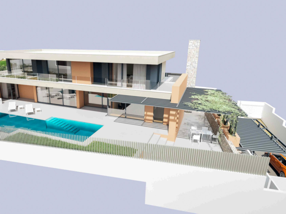 Set on a plot of 866 m², the villa offers 460 m² of construction, standing out for its ample and luminous spaces. Its layout has been carefully planned to optimise comfort and practicality in every corner.