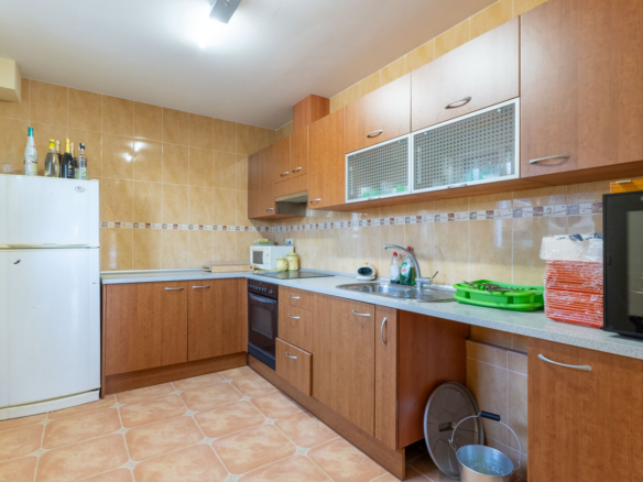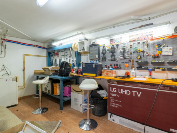 The house is divided into two floors. On the ground floor, a large garage welcomes you, ideal for several vehicles or for creating a storage and hobby area. This level also includes a practical work area, a storage room, a toilet, as well as a living and dining room with direct access to a terrace that invites you to enjoy the climate year-round. The floor is completed by a separate, functional, and well-distributed kitchen.